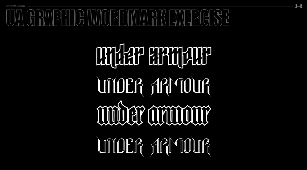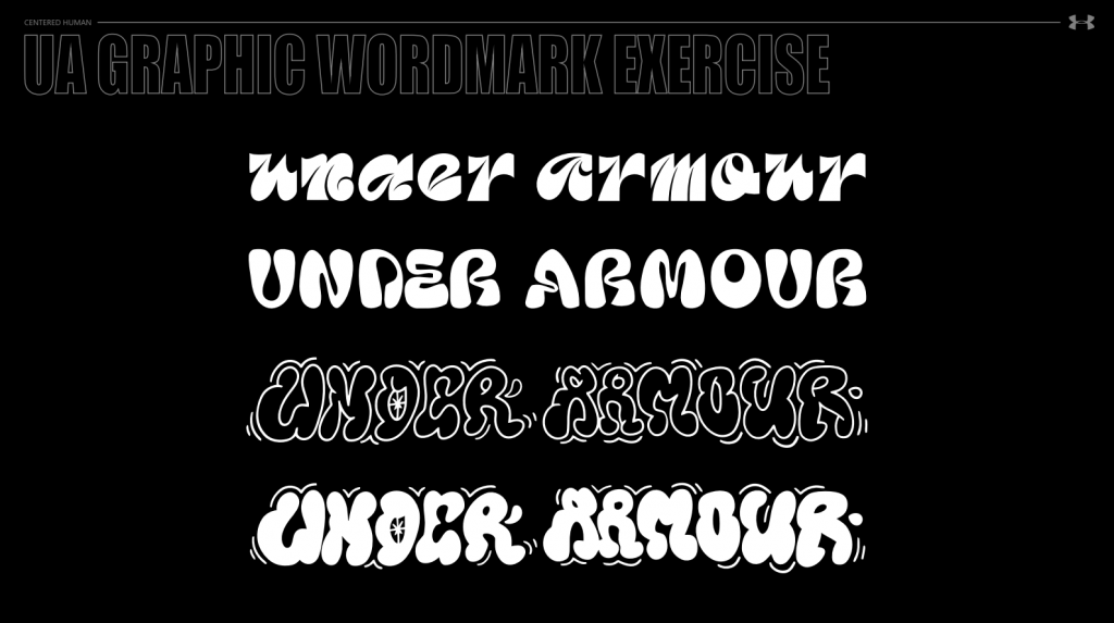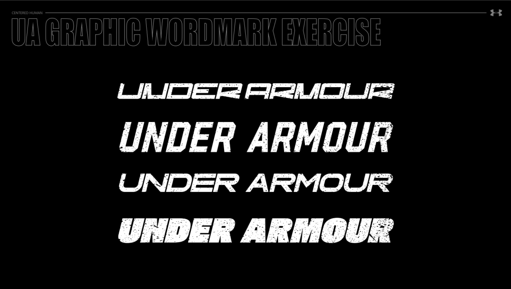 Following the research phase, the team embarked on an intensive ideation stage, exploring over 50 distinct variations of the Under Armour wordmark. These variations encompassed numerous font styles, weights, treatments, and graphic integrations. The iterative process involved constant feedback loops between Centered Human and the Under Armour product creation team. Ultimately, through this rigorous exploration and refinement, the teams collectively landed on a sophisticated and dynamic script logo as the chosen final direction. This script wordmark offered the desired balance of history, modernity, and lifestyle appeal.